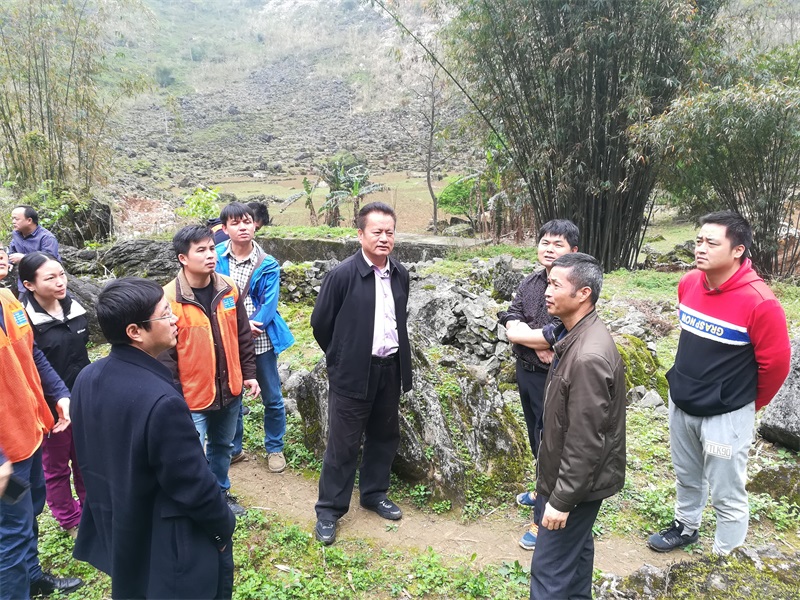 2019年3月27日,機械院公司王吉才董事長邀請林科院生態(tài)所專家候遠(yuǎn)瑞到定點扶貧村古竹村進行石漠化分析及經(jīng)濟林種植調(diào)研,機械院公司董事、教授級高工吳湘檸一同參加調(diào)研。調(diào)研過程中,村“兩委”和駐村扶貧工作隊詳細(xì)介紹了古竹村的生態(tài)現(xiàn)狀及存在的問題、困難,針對古竹村存在的痛點、難點問題,王吉才董事長與專家一行對古竹村地質(zhì)條件、環(huán)境及現(xiàn)有的核桃種植產(chǎn)業(yè)進行了初步調(diào)查與分析。