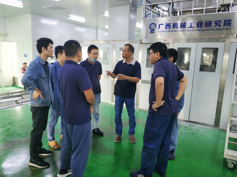 不斷創(chuàng)新,勇于突破是一個科研單位矢志不渝的追求。2018年7月,我院對自主研發(fā)的套裝式內(nèi)外袋物料包裝全自動生產(chǎn)線進行了為期1個月的技術改進,8月圓滿完成技術改進與調(diào)試任務,8月29日正式投入糖廠開榨使用。