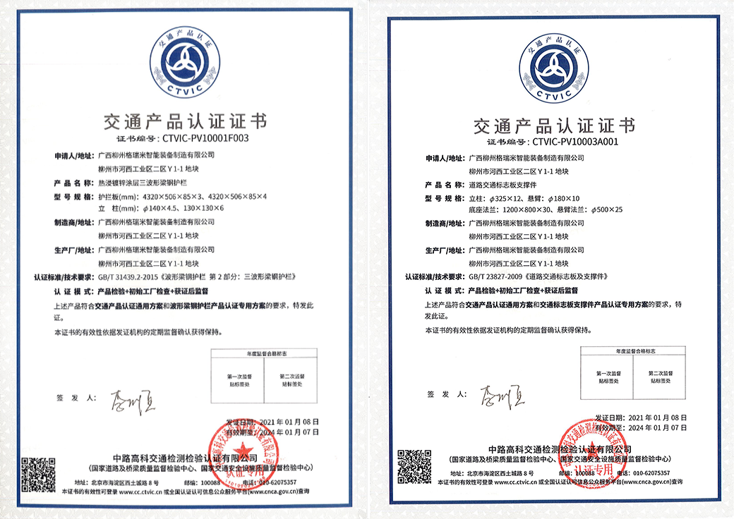 此次柳州格瑞米公司成為廣西首家獲得相關交通產(chǎn)品認證證書,也充分證實了其產(chǎn)品在交安產(chǎn)品安全性與可靠性方面的領先實力,樹立起行業(yè)品質標桿。2020年11月自治區(qū)人民政府批復了《廣西高速公路網(wǎng)規(guī)劃(2018-2030)》,此次獲得產(chǎn)品認證證書,為廣西交通建設項目提供了前期準備,堅定了柳州格瑞米公司立足柳州,輻射廣西,放眼全國的信心,也為其交通產(chǎn)品進全國市場鋪平了道路。