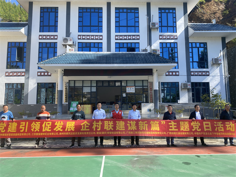 凌云縣人民政府常務(wù)副縣長劉華干,交投商貿(mào)公司黨委副書記、董事、總經(jīng)理何麗芳,交投商貿(mào)公司黨委副書記、董事、工會主席呂玉泉,機械院黨委委員、副總經(jīng)理吳湘檸,殼牌建筑與道路業(yè)務(wù)中國區(qū)市場與業(yè)務(wù)發(fā)展總監(jiān)曹鑫強,以及凌云縣下甲鎮(zhèn)有關(guān)單位人員,機械院、商貿(mào)公司黨員代表共30余人參加活動。