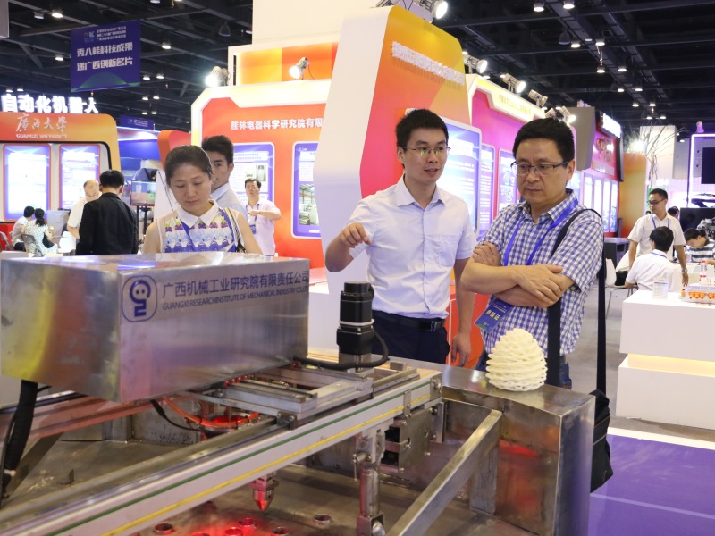此次展會(huì)以“創(chuàng)新支撐發(fā)展,建設(shè)壯美廣西”為主題,機(jī)械院公司除了作為廣西先進(jìn)制造的突出成就單位落戶于廣西科技支撐產(chǎn)業(yè)高質(zhì)量發(fā)展展區(qū)的先進(jìn)制造板塊(以下簡(jiǎn)稱(chēng)“先進(jìn)制造”展區(qū)),同時(shí)還作為南寧市重大專(zhuān)項(xiàng)的科技成果創(chuàng)新單位亮相于南寧市的區(qū)域展廳。機(jī)械院公司近年來(lái)貫徹落實(shí)“中國(guó)制造2025”工作要求,加快推進(jìn)“互聯(lián)網(wǎng)+工業(yè)”行動(dòng),促進(jìn)互聯(lián)網(wǎng)、大數(shù)據(jù)、人工智能與制造業(yè)的深度融合,推動(dòng)“廣西制造”向“廣西智造”轉(zhuǎn)變。在“先進(jìn)制造”展區(qū),我司的精品“三劍客”--套裝式內(nèi)外袋物料包裝全自動(dòng)生產(chǎn)線、高壓清洗機(jī)器人系統(tǒng)和3D打印項(xiàng)目閃耀登場(chǎng),傾力展示工業(yè)機(jī)器人領(lǐng)域以及3D打印領(lǐng)域的創(chuàng)新成果。