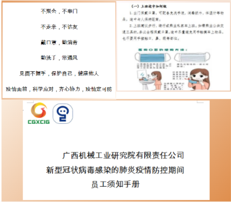 科學(xué)防控,嚴(yán)防死守。公司嚴(yán)格執(zhí)行《廣西機(jī)械工業(yè)有限責(zé)任公司公司新型冠狀病毒肺炎防控方案》的要求,落實(shí)辦公樓出入規(guī)定、員工就餐規(guī)定、辦公場(chǎng)所及公共設(shè)施防護(hù)等規(guī)定,確保復(fù)工人員工作環(huán)境的安全健康。加強(qiáng)內(nèi)部管理,充分利用會(huì)議室等閑置空間,將每間辦公室的人員都控制在3人以?xún)?nèi),分散辦公,降低密度,公司還推行分批取餐、分散就餐的方式,避免出現(xiàn)交叉感染。加強(qiáng)消毒區(qū)域劃分責(zé)任制落實(shí),建立消毒工作記錄,每日2次對(duì)辦公室、車(chē)間、電梯、食堂等重點(diǎn)區(qū)域進(jìn)行清潔。設(shè)置廢棄口罩專(zhuān)用垃圾桶,有效阻斷感染途徑。
