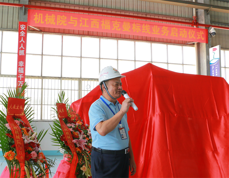 機(jī)械院黨委書記、董事長、總經(jīng)理王吉才和福克曼公司總經(jīng)理張磊等人在機(jī)械院第二車間為全自動(dòng)熱熔標(biāo)線機(jī)揭幕,機(jī)械院領(lǐng)導(dǎo)班子成員、機(jī)電工程公司全體員工參加儀式。