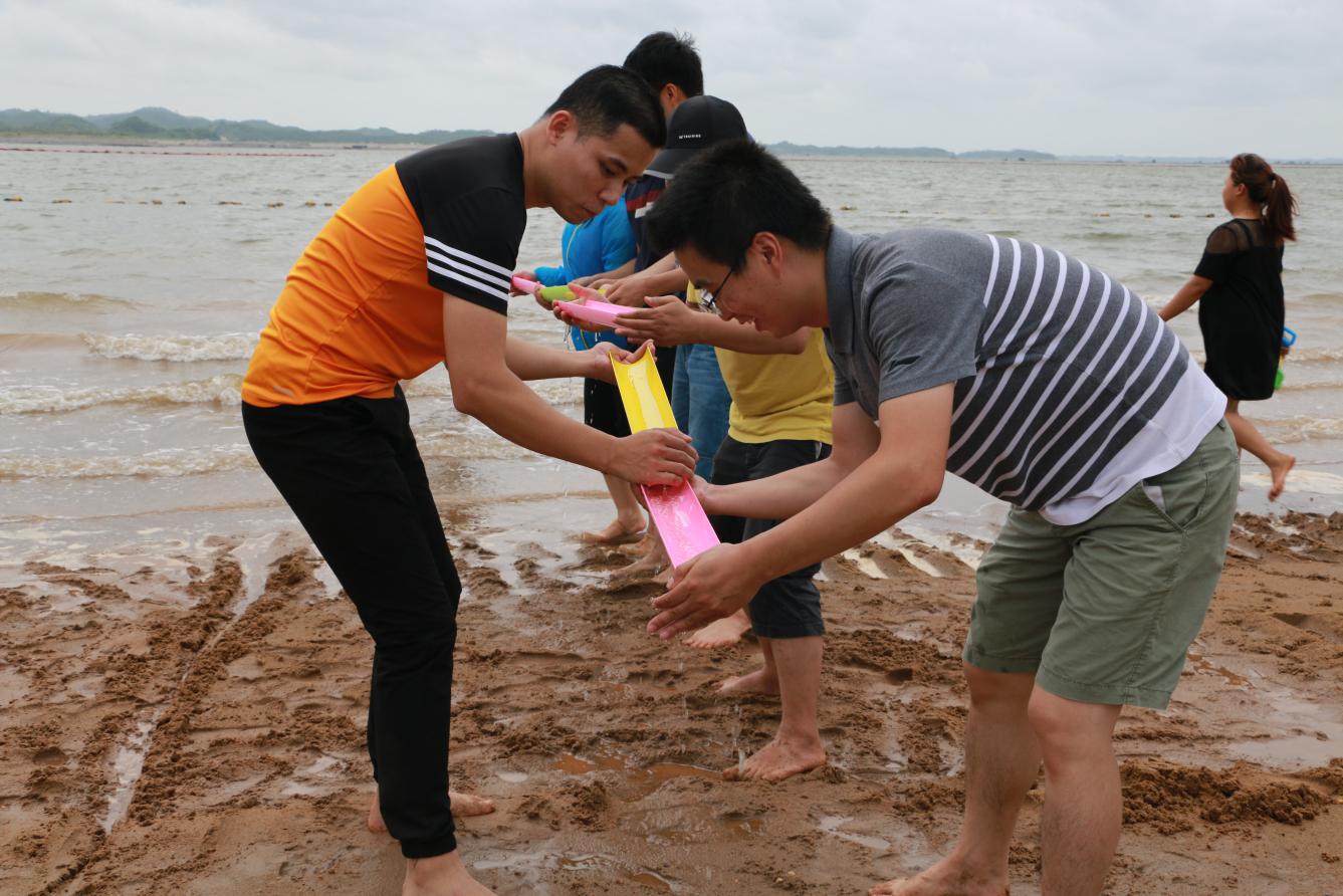 潮潤的海風(fēng)吹拂著,腳踏細(xì)沙,眼觀碧波,茅尾海的沙灘景色盡收眼底。6月23日,我院行政和黨群部、市場營銷部、財(cái)務(wù)部和技術(shù)中心等4個部門合計(jì)41名員工匯聚在茅尾海沙灘,一場由院工會主辦,技術(shù)中心支部承辦組織的戶外素質(zhì)拓展培訓(xùn)活動在這里傾情上演。