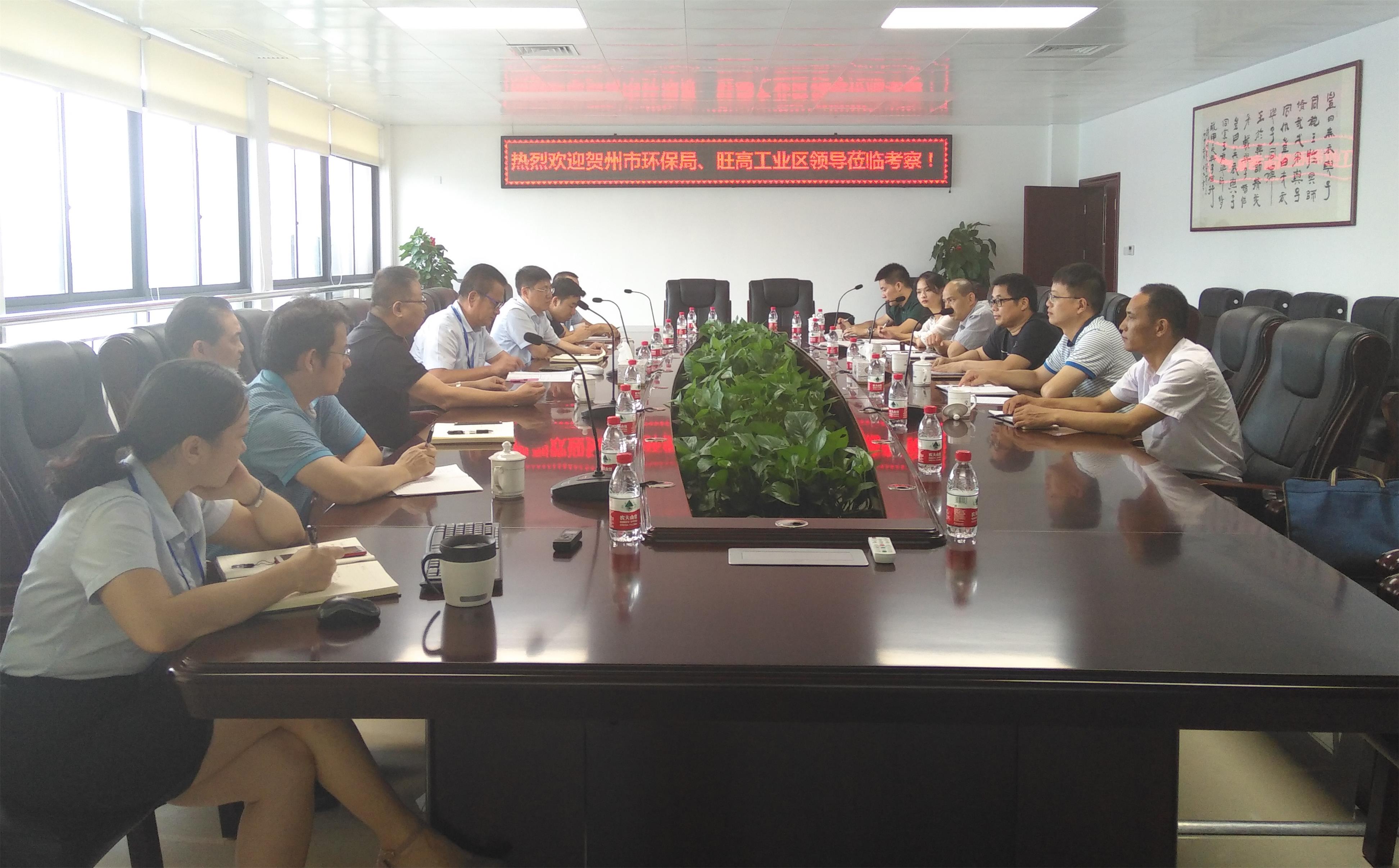 2018年8月6日,賀州市環(huán)保局黃堅(jiān)局長帶領(lǐng)旺高工業(yè)區(qū)一行6人到我院參觀考察,并召開碳酸鈣產(chǎn)業(yè)污染源調(diào)研及治理工作座談會。