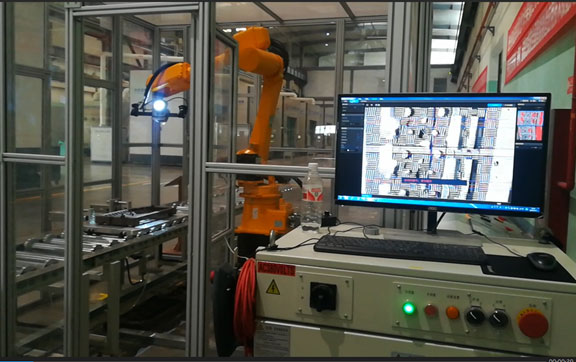 為滿足快速獲取生產(chǎn)零部件精確檢測結(jié)果的需求,全自動(dòng)機(jī)器人在線檢測系統(tǒng)集成了機(jī)器人、自動(dòng)識別系統(tǒng)、光學(xué)三維掃描系統(tǒng)、計(jì)算機(jī)圖像處理系統(tǒng)、滾筒輸送線及托盤等多種技術(shù),實(shí)現(xiàn)自動(dòng)識別輸送線上零部件類型,并匹配相應(yīng)軌跡程序驅(qū)動(dòng)機(jī)器人對零部件表面結(jié)構(gòu)進(jìn)行光學(xué)三維自動(dòng)掃描、自動(dòng)拼接,從而自動(dòng)獲取零部件完整三維點(diǎn)云數(shù)據(jù)的系統(tǒng),具有不貼點(diǎn)、不噴粉、全自動(dòng)、高精度、高效率、方便性、穩(wěn)定性的特點(diǎn)。
