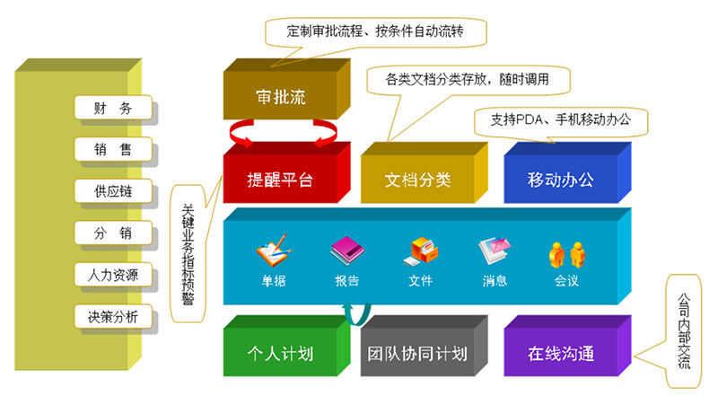 辦公自動化系統(tǒng)適用于任何企事業(yè)單位、公司、工廠等各類機構的行政辦公需求,系統(tǒng)全面引入協(xié)同思想、工作流技術,電子簽章等技術,并針對手機/平板開發(fā)了專用APP,為用戶實現(xiàn)一個集內部通訊、信息發(fā)布、協(xié)同工作、知識管理、輔助辦公為一體的高效協(xié)同辦公系統(tǒng)。主要功能包括外勤管理、公文管理、申請管理、網絡通訊、車輛管理、辦公用品管理、辦公設備管理、日程管理、會議管理、工作周報、公用信息、網絡硬盤等。